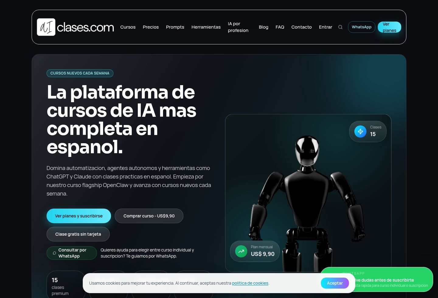 Spanish-language AI learning platform built around clear pathways, search-driven discovery, and conversion-aware course presentation.